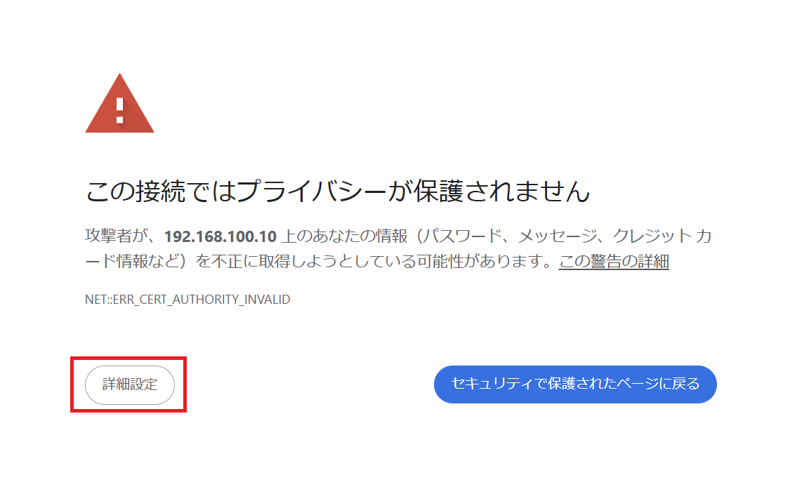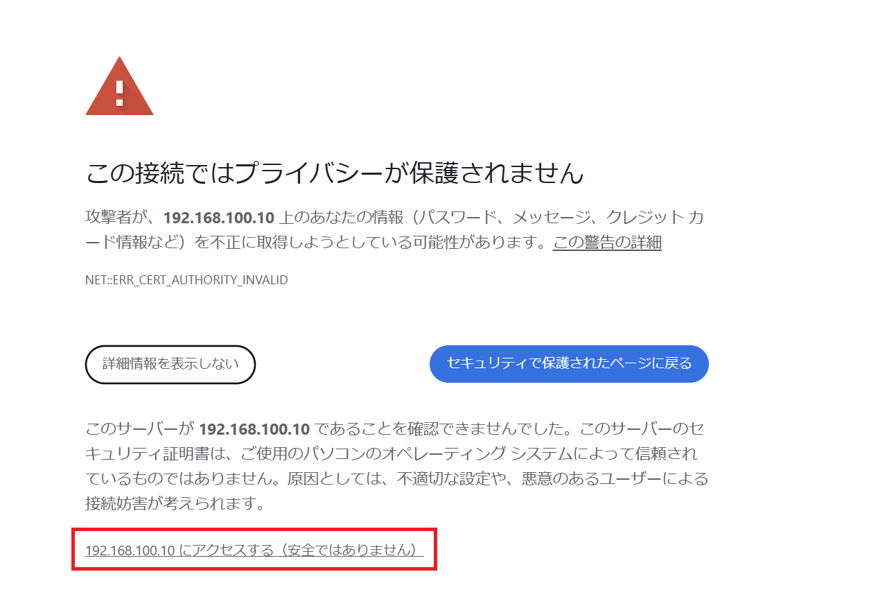 以下の通り表示されたら、詳細設定からアクセスするを選択する。