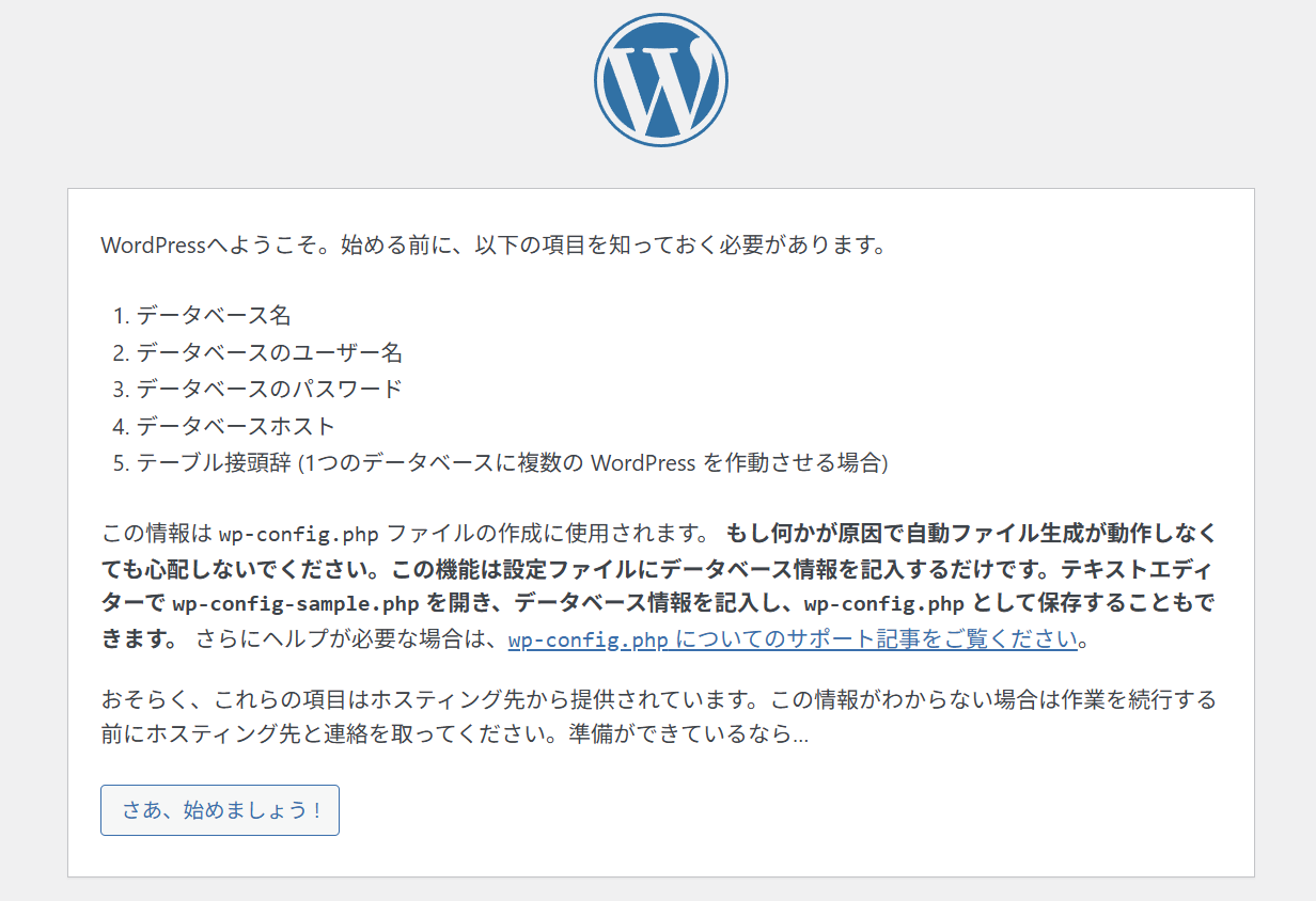 WordPressのインストールボタンを押下すると、以下の画面に遷移する。