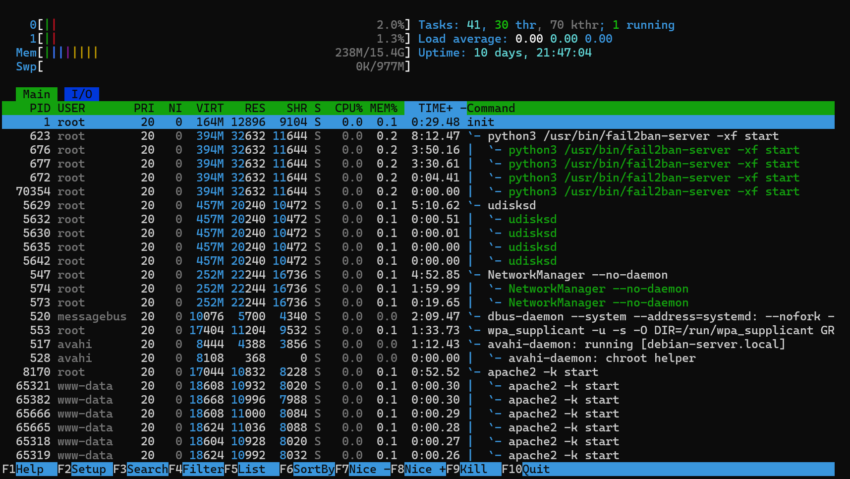 top の代わりに htop を使用すると、より見やすいUIでプロセスを管理できる。