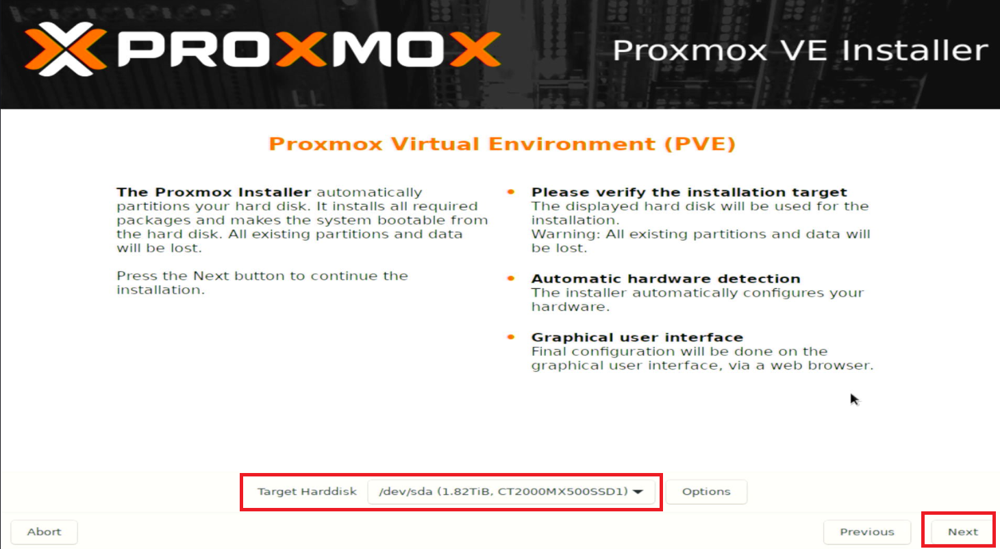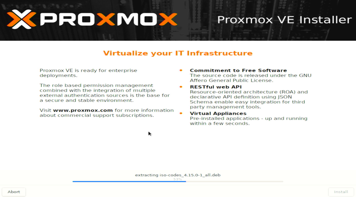 インストール中はProxmoxの機能の紹介や宣伝が表示される。暇つぶしに英文を読むがよい。
