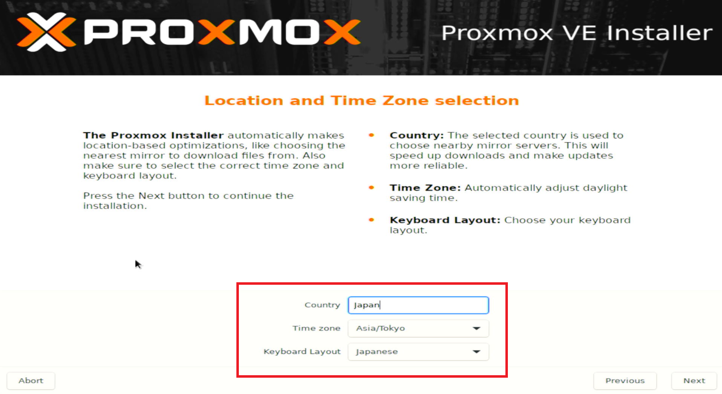 Keyboard Layout: キーボードは日本語用キーボード(JIS配列)であれば、Japaneseを選択する。