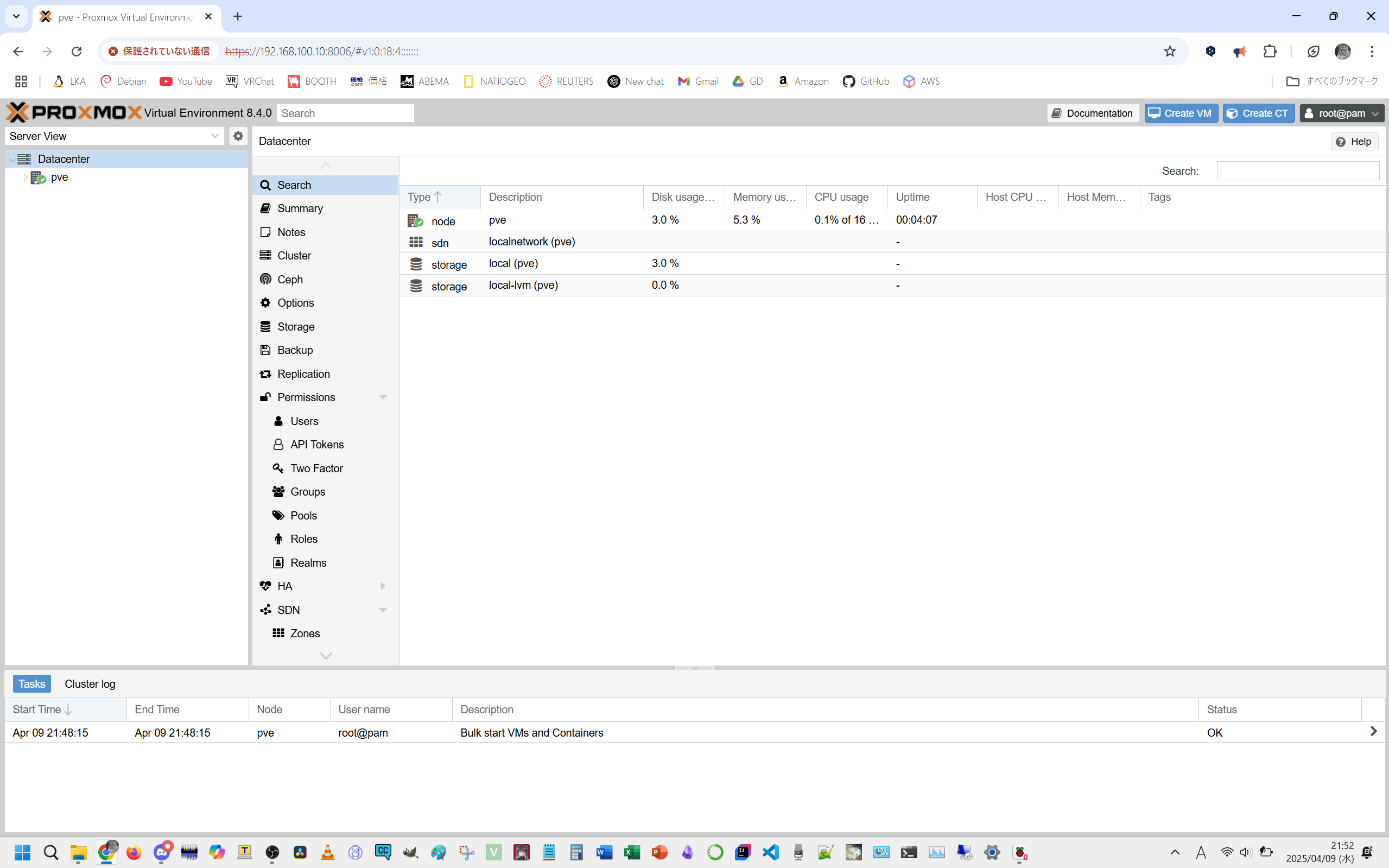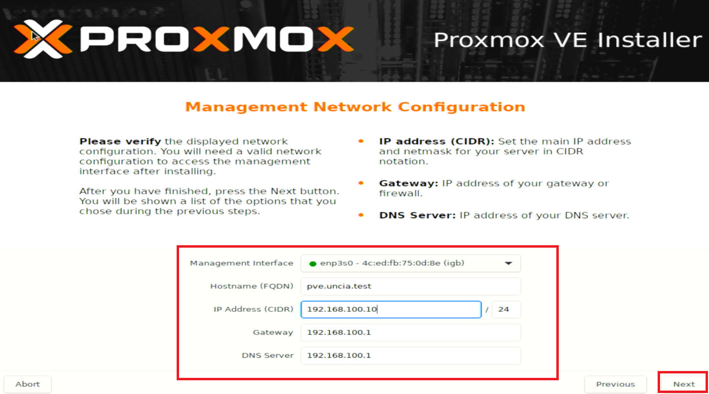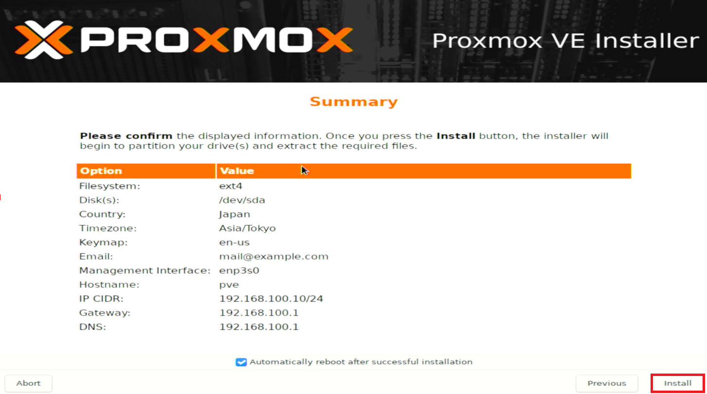 ProxmoxはWebUIで仮想マシンの作成・ハードウェア構成変更・削除を行う。ここで決定するIPアドレスがWebUiへアクセスするIPアドレスになる。