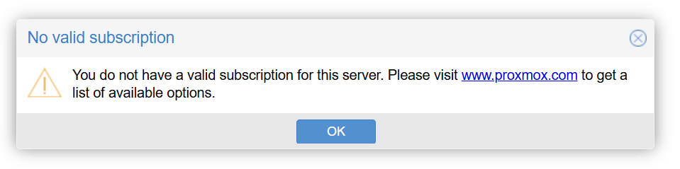 以下のメッセージは有効なサブスクリプションがないという警告になるが、無料版として利用するので無視して良い。そのままOKボタンを押下し消す。